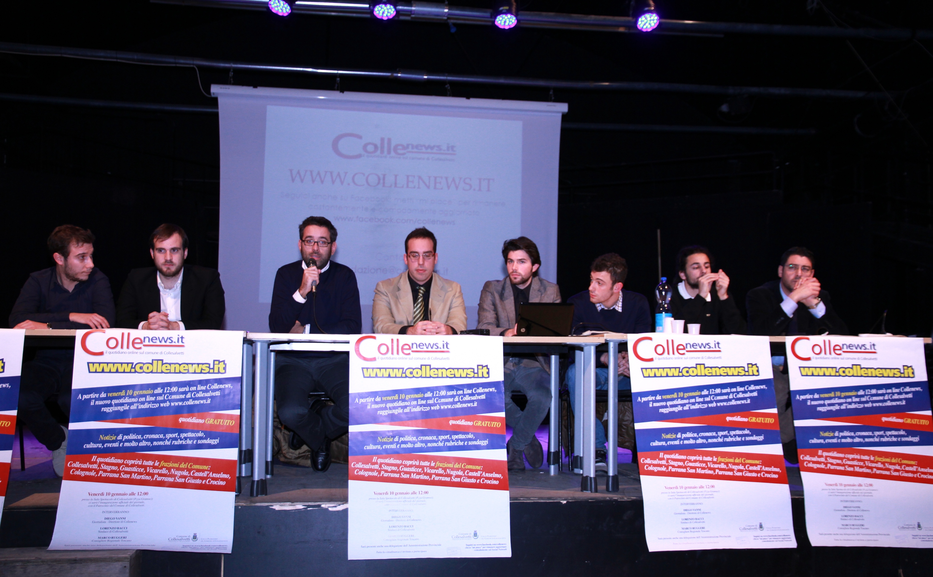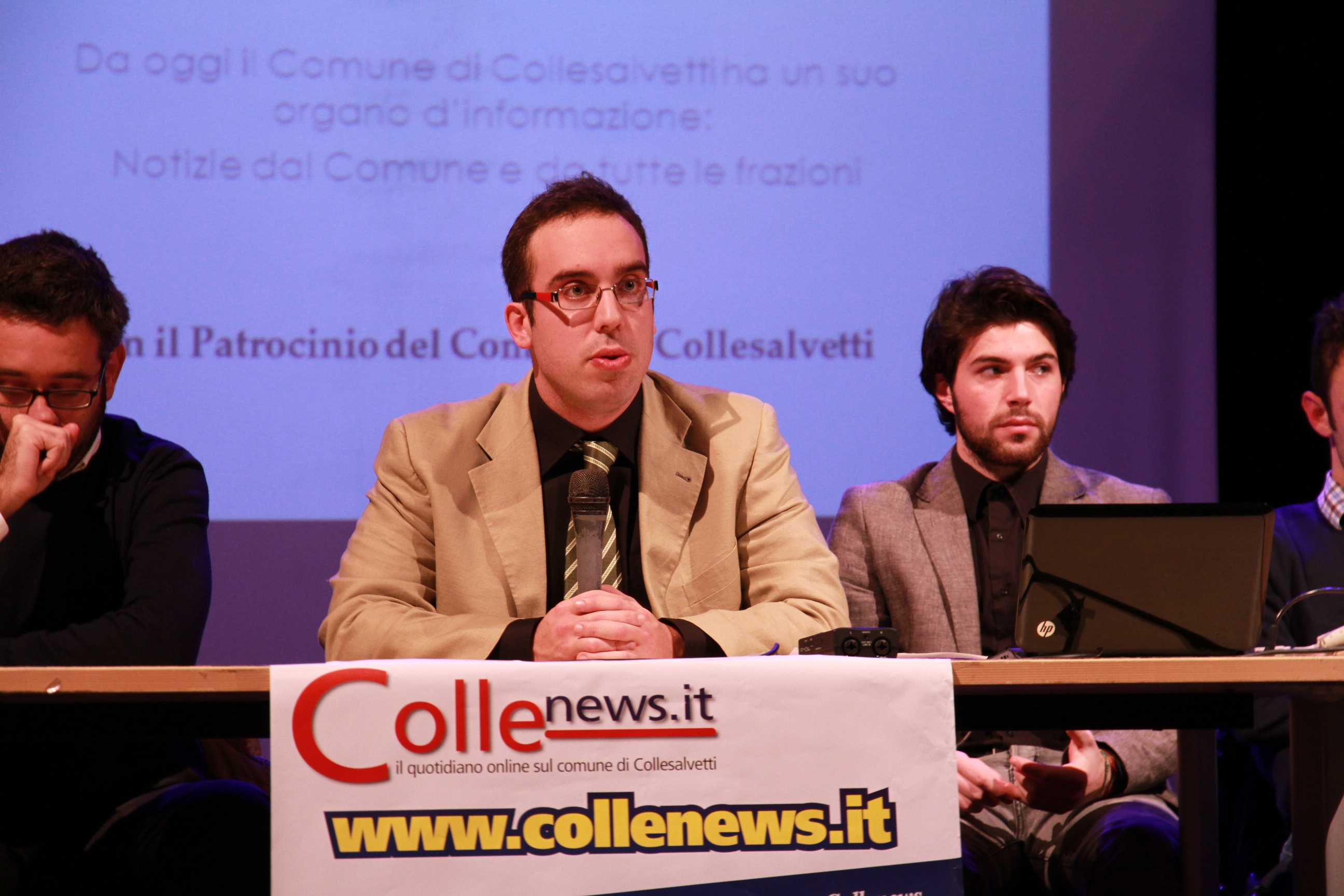 L’intervento del Sindaco Bacci Il Sindaco Bacci, collega del nostro direttore in quanto iscritto al suo stesso Albo professionale, dal canto suo, è intervenuto definendosi molto entusiasta di questa iniziativa e dicendo di aver accettato molto volentieri di concedere il patrocinio del Comune all’evento «Nelle settimane scorse Diego mi aveva già mostrato il progetto di Collenews e sono stato molto contento di concedere il patrocinio e anche di concedere la Sala Spettacolo come luogo per ospitare questo evento, ritenendolo il luogo più adatto». Il Sindaco è quindi rimasto molto soddisfatto dal lavoro del direttore, ma anche da quello dei collaboratori e soprattutto condivide il fatto che il giornale sarà pubblicato su internet: «Dati alla mano – continua il Sindaco – si capisce come anche quei giornali che hanno veste cartacea, stanno acquisendo grande importanza anche grazie al lavoro fatto on-line, sia quei quotidiani che hanno fama nazionale sia quelli a livello locale. Diego è stato molto bravo a credere in questa opportunità, soprattutto perché, dal mio punto di vista, si tratta di una vera e propria iniziativa imprenditoriale e visti i tempi che corrono, nei quali nel campo imprenditoriale poco o nulla si muove, avere avuto questa idea da parte di Diego gli rende molto onore». Per il Sindaco Bacci «avere un giornale che quotidianamente tiene informato tutto il Comune è una cosa molto importante». Il primo cittadino ha fatto riferimento agli anni passati, quando comunicati stampa riguardanti rischi di forte pioggia o di forte nevicate non venivano neppure pubblicati, causando gravi disagi ai cittadini delle varie frazioni. Per concludere Lorenzo Bacci ha voluto ringraziare ancora una volta il direttore di Collenews e tutti i collaboratori giornalistici specificando che le porte del Comune saranno sempre aperte a loro per qualsiasi bisogno.