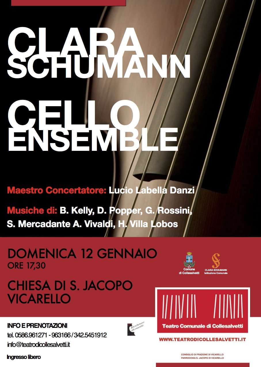 Vicarello – Oggi, alle ore 17,30, presso la Chiesa S. Jacopo, va in scena il “Clara Schumann Cello Ensemble”. Il concerto è stato organizzato dall’Istituzione comunale per la cultura “Clara Schumann”, in collaborazione con il Consiglio di Frazione e la Parrocchia stessa. L’evento è gratuito.