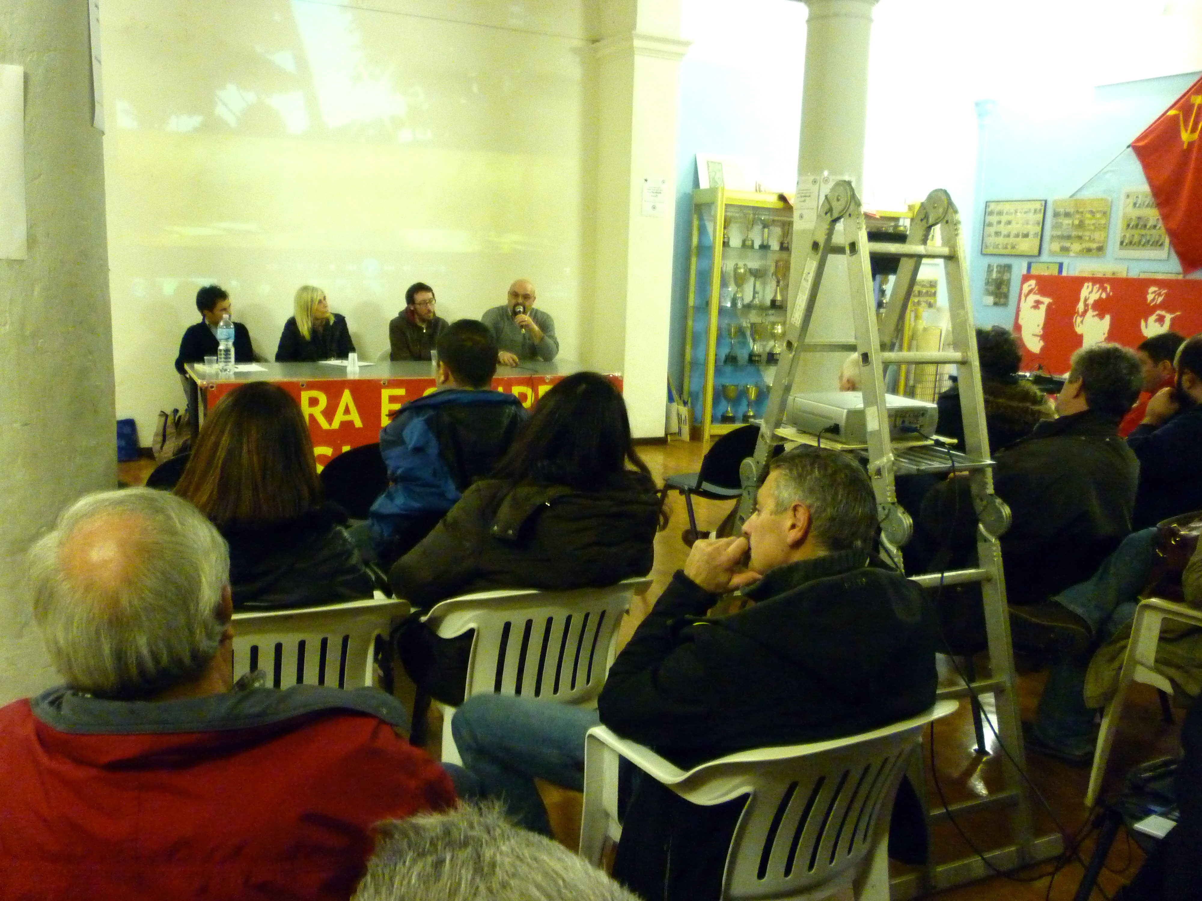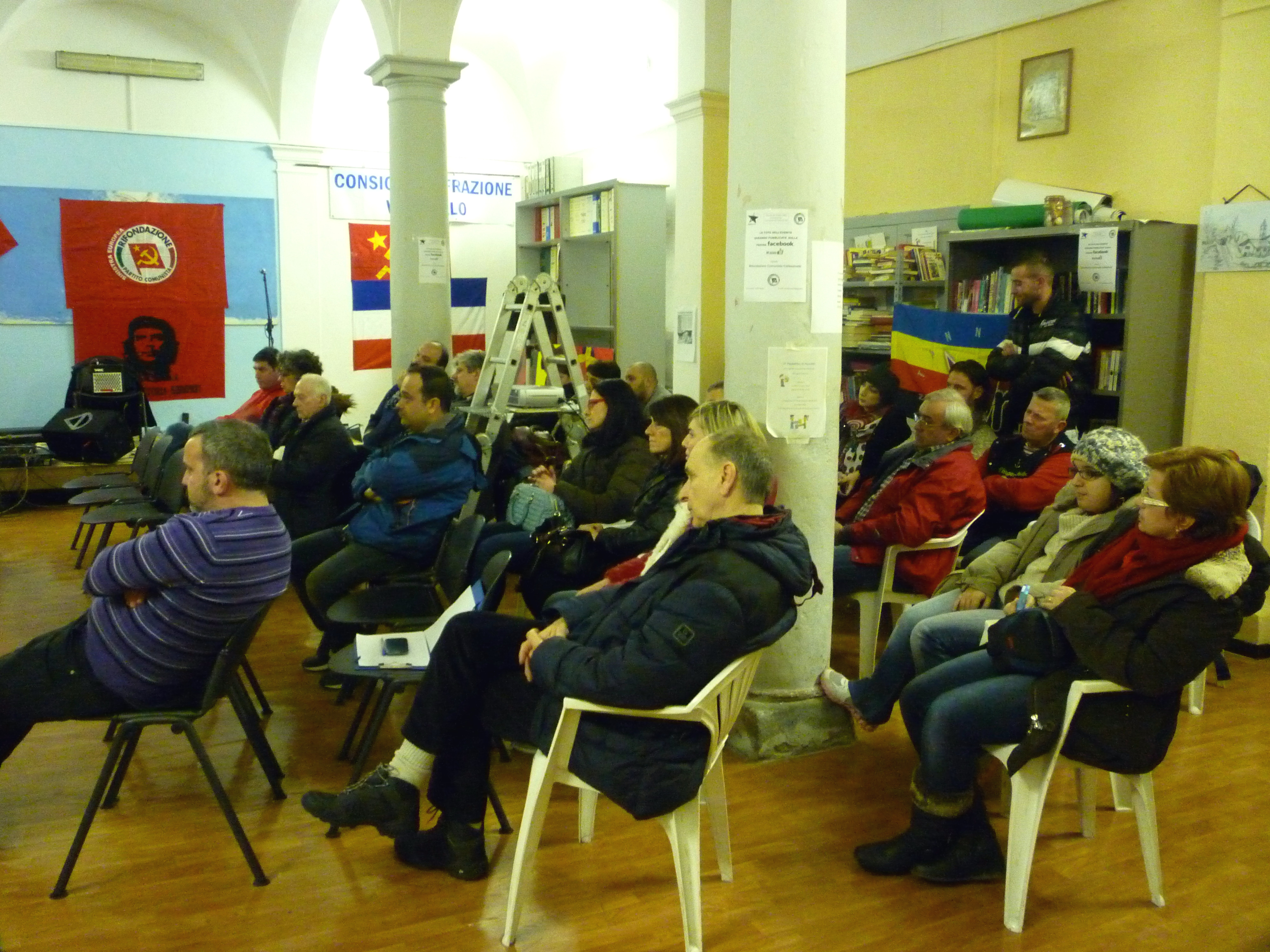 Dopo il dibattito, il Circolo di Rifondazione Comunista di Collesalvetti ha offerto un’apericena presso il Circolo Arci “Macchi” di Vicarello. La serata è poi proseguita ancora presso la Sala delle Colonne, dove si è esibito Sigaro della Banda Bassotti.