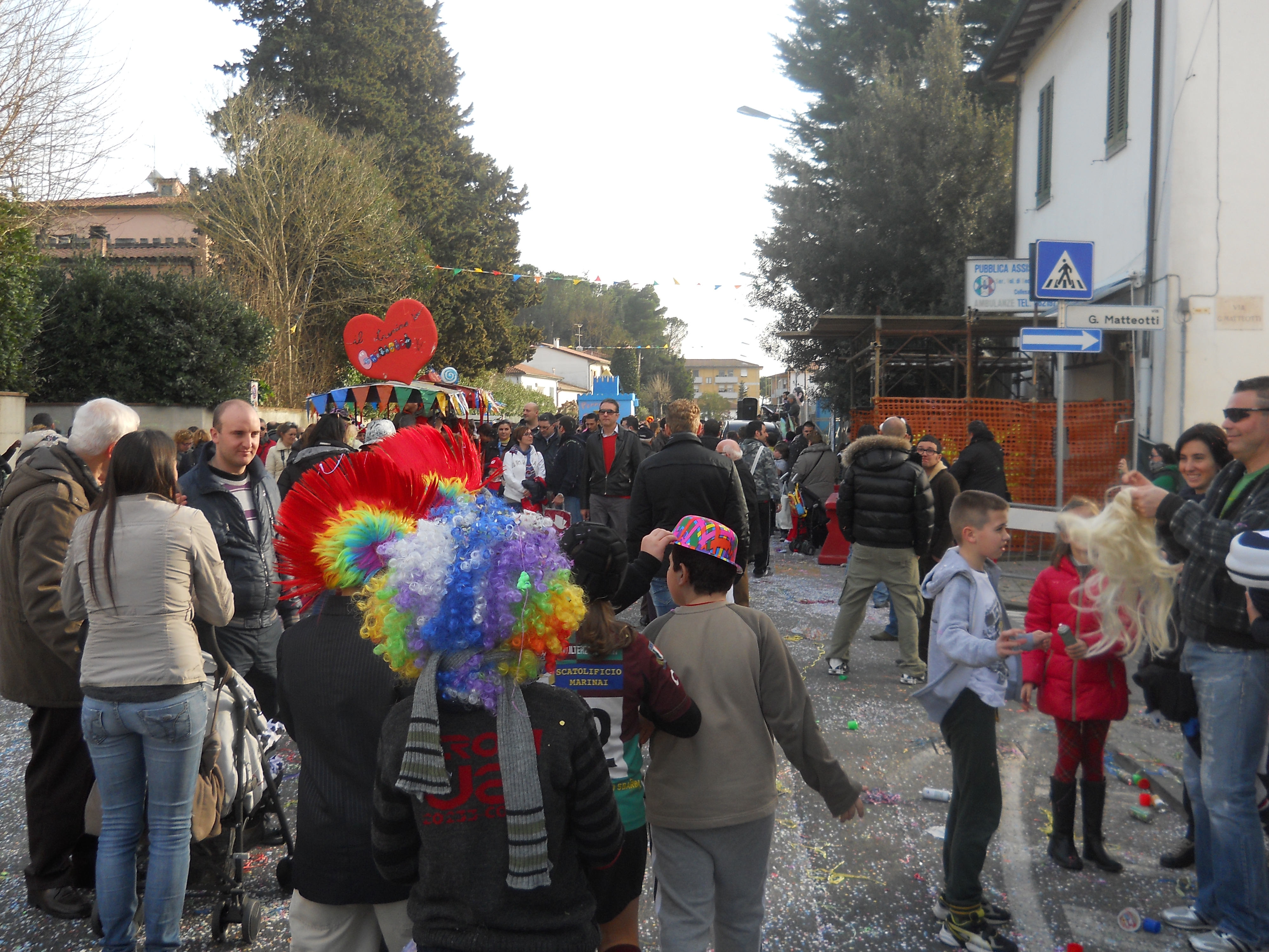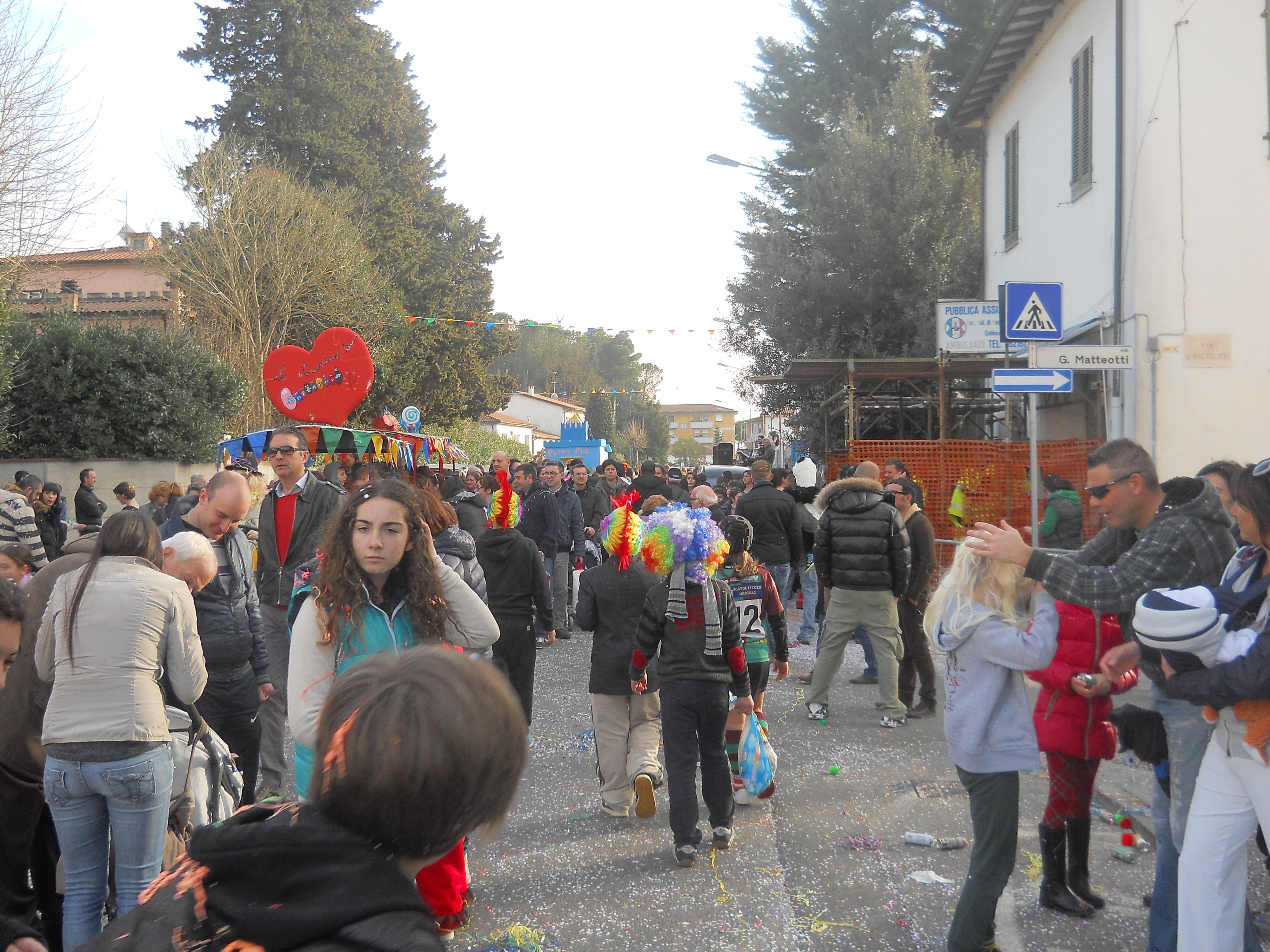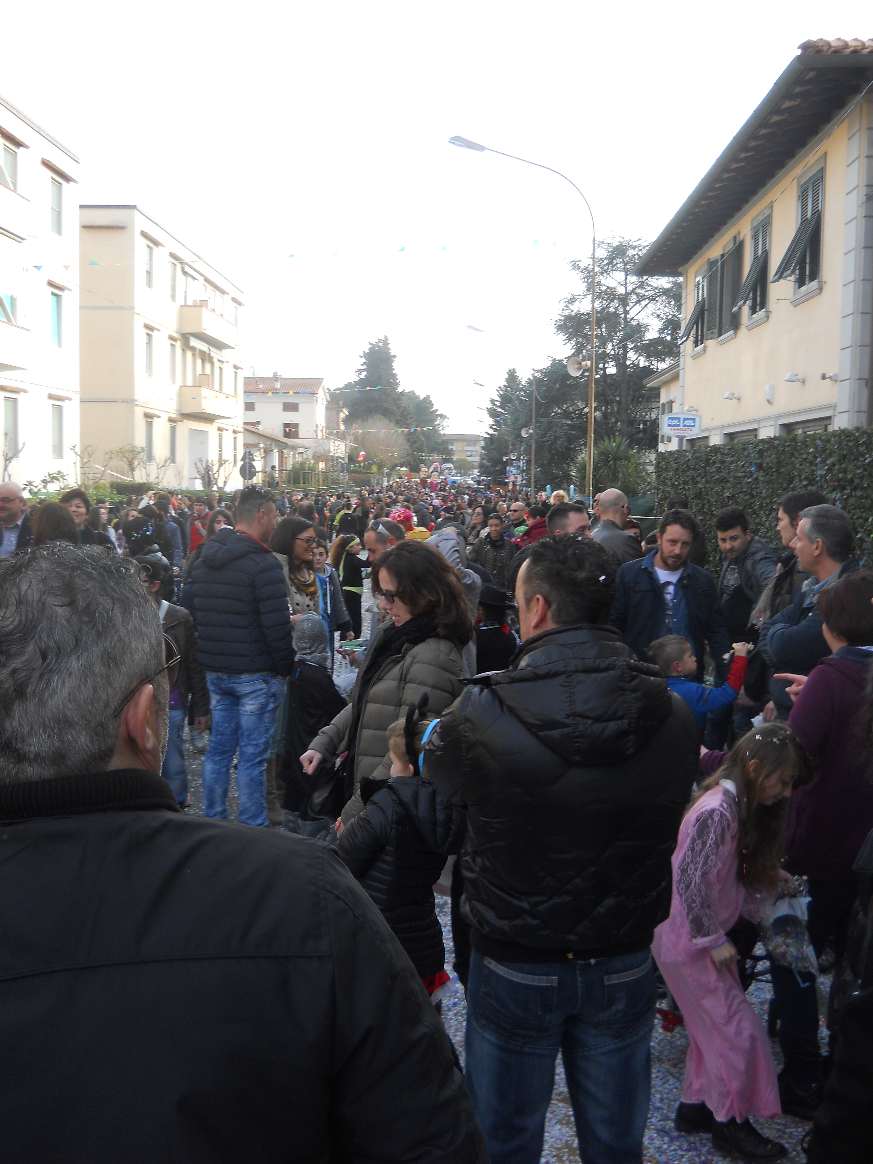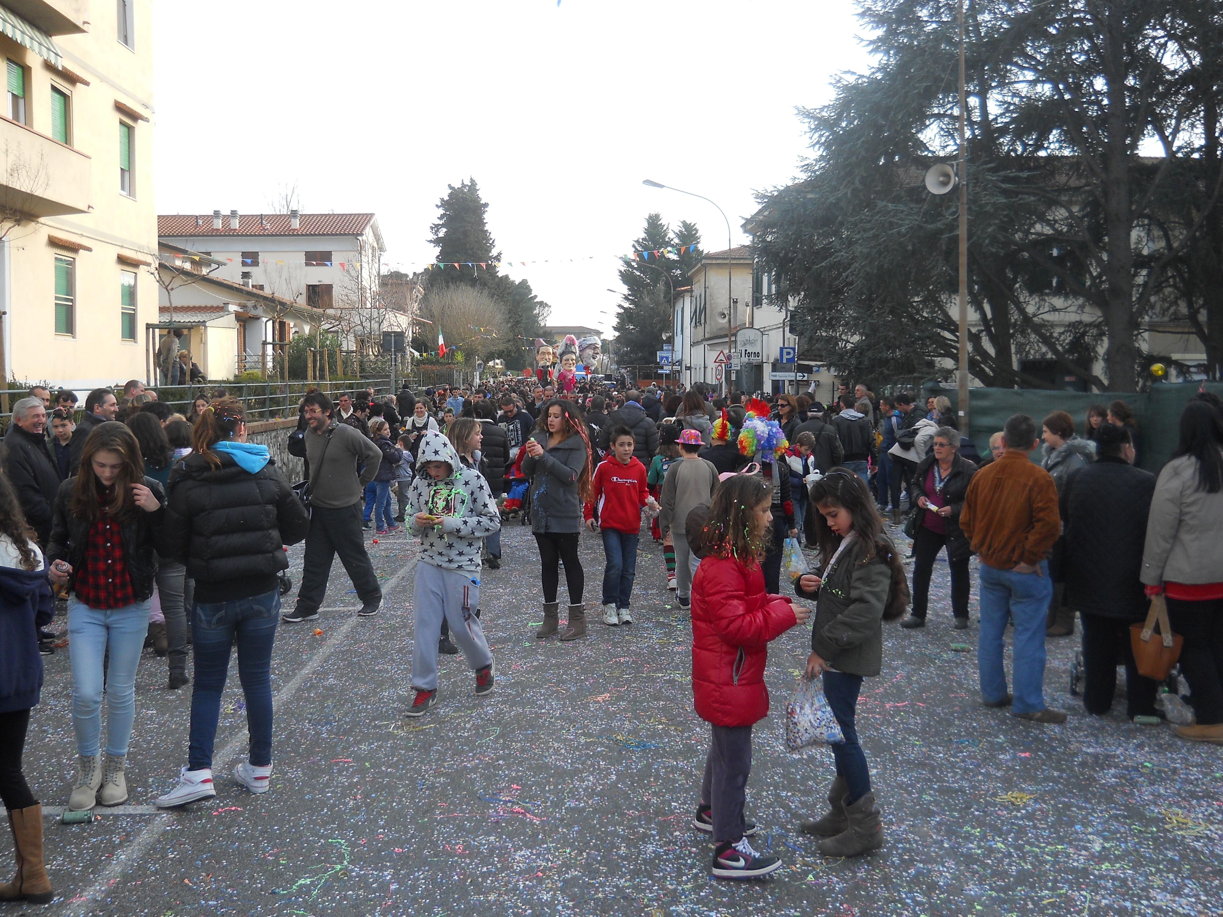 Collesalvetti – Una grande festa ricca di colori ed allegria. Questo é stato il carnevale colligiano che ha sfilato questo pomeriggio per Via Roma. Il manto stradale era completamente ricoperto di coriandoli e su di esso hanno sfilato carri che trasportavano dei bambini festanti in maschera. Sull’intero tratto di Via Roma sul quale ha sfilato il carnevale, ad allietare ulteriormente i partecipanti, c’era la musica. Presenti in loco, infine, anche stand che vendevano coriandoli e stelle filanti, ma anche frati, croccante, dolciumi vari, patatine fritte e bibite. All’evento hanno partecipato persone di tutte le eta: dai bambini piccoli ai ragazzini, passando per giovani, adulti ed anziani.