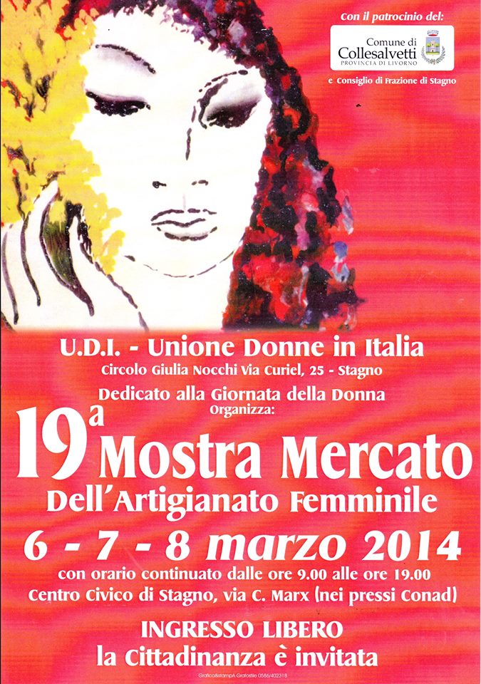 Stagno – Da giovedì, presso il centro Civico di Stagno, al via la tradizionale mostra-mercato di artigianato femminile, organizzata da U.D.I (Unione Donne Italiane), per la festa della donna. La mostra durerà tre giorni -quidi il 6, il 7 e l’8 – e sarà ad orario continuato (9:00 – 19:00) e ad ingresso gratuito. Da parte dell’U.D.I. un caloroso invito a tutta la cittadinanza a partecipare