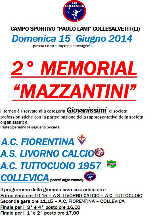 Il programma prevede due semifinali. Alle 10,15 si affronteranno Livorno e Tuttocuoio; alle 11,15 sarà la volta di Fiorentina e Collevica. Dopo il pranzo offerto dalla squadra di casa a tutti; allievi, allenatori e dirigenti, alle 16 si disputa la finale per il 3° e 4° tra le perdenti delle due partite della mattina, mentre le vincenti si incontrano nella finalissima delle 17. Al termine della giornata, si terrà la cerimonia di premiazione.