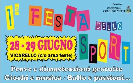 Vicarello Sabato 28 giugno dalle 17 alle 24 e domenica 29 dalle 8 alle 24 avrà luogo, presso l’area feste di Vicarello, la “1^ Festa dello Sport”, organizzata dalla Confraternita Misericordia di Vicarello con il Patrocinio del Comune di Collesalvetti. L’obiettivo è la promozione dell’attività fisica e sportiva come corretto stile di vita.