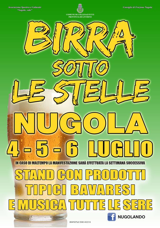 prodotti tipici bavaresi e musica dal vivo. Saranno questi gli elementi chiave dell’ iniziativa “Birra sotto le stelle” che inizierà stasera e replicherà anche domani e dopodomani. La festa, giunta alla seconda edizione, è organizzata dall’associazione sportivo-culturale Nugola…ndo in collaborazione con il Consiglio di Frazione di Nugola.