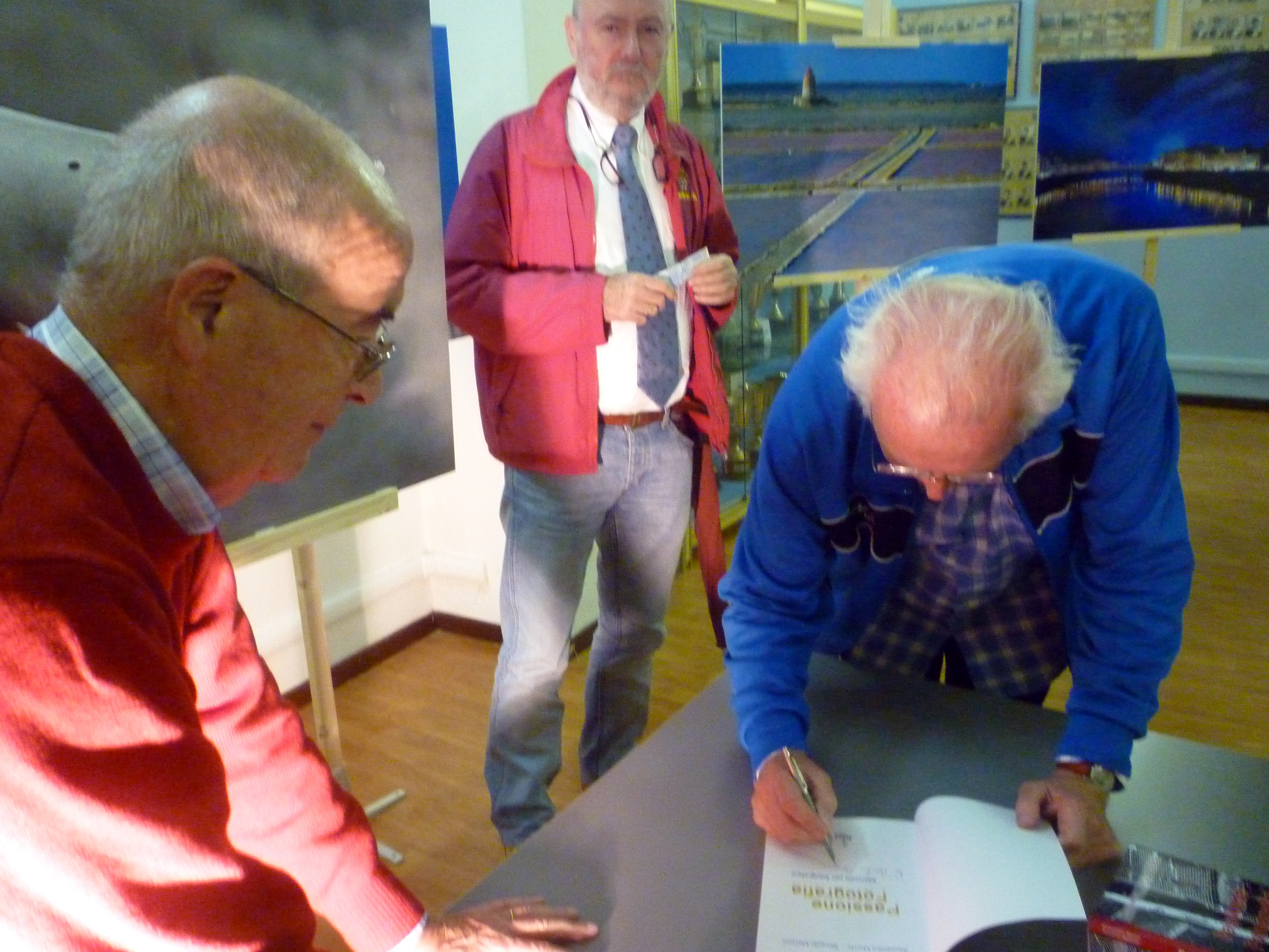 Alesssandro Marchi firma una copia del libro a Carlo Carmassi, Presidente del Gruppo Fotografico Vicarello