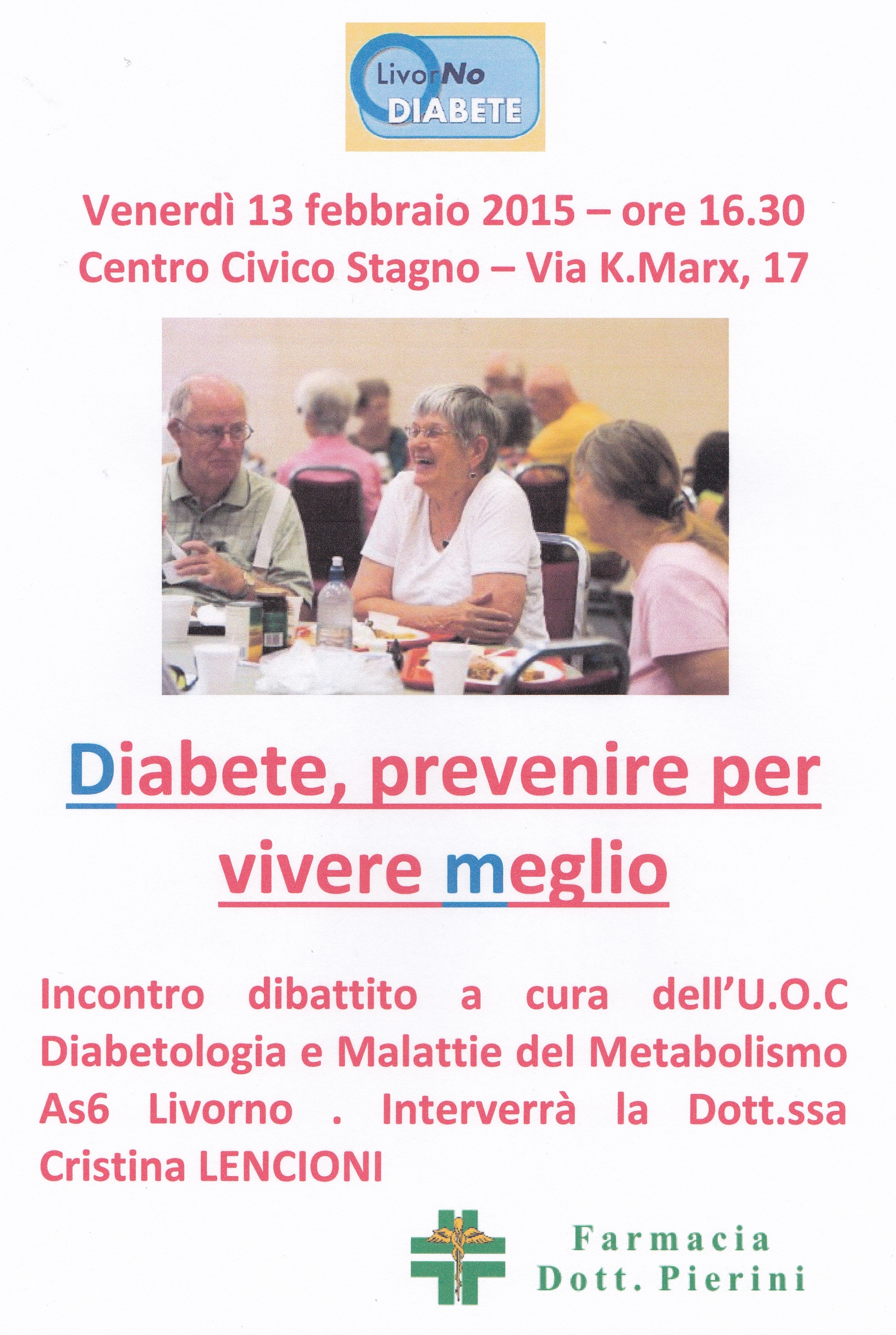 Stagno “Diabete, prevenire per vivere meglio”. E’ questo il titolo dell’incontro che si terrà venerdì 13 febbraio alle 16:30 presso il Centro Civico di Stagno, in Via Marx 17. Un interessante incontro, a cura dell’Unità Operativa di Diabetologia e Malattie del Metabolismo dell’Asl 6 di Livorno. L’incontro-dibattito sarà condotto oltre che dal dottor Graziano Di Cianni, direttore della Diabetologia di Livorno, anche dalla dottoressa Cristina Lencioni, diabetologa della stessa Unità Operativa.