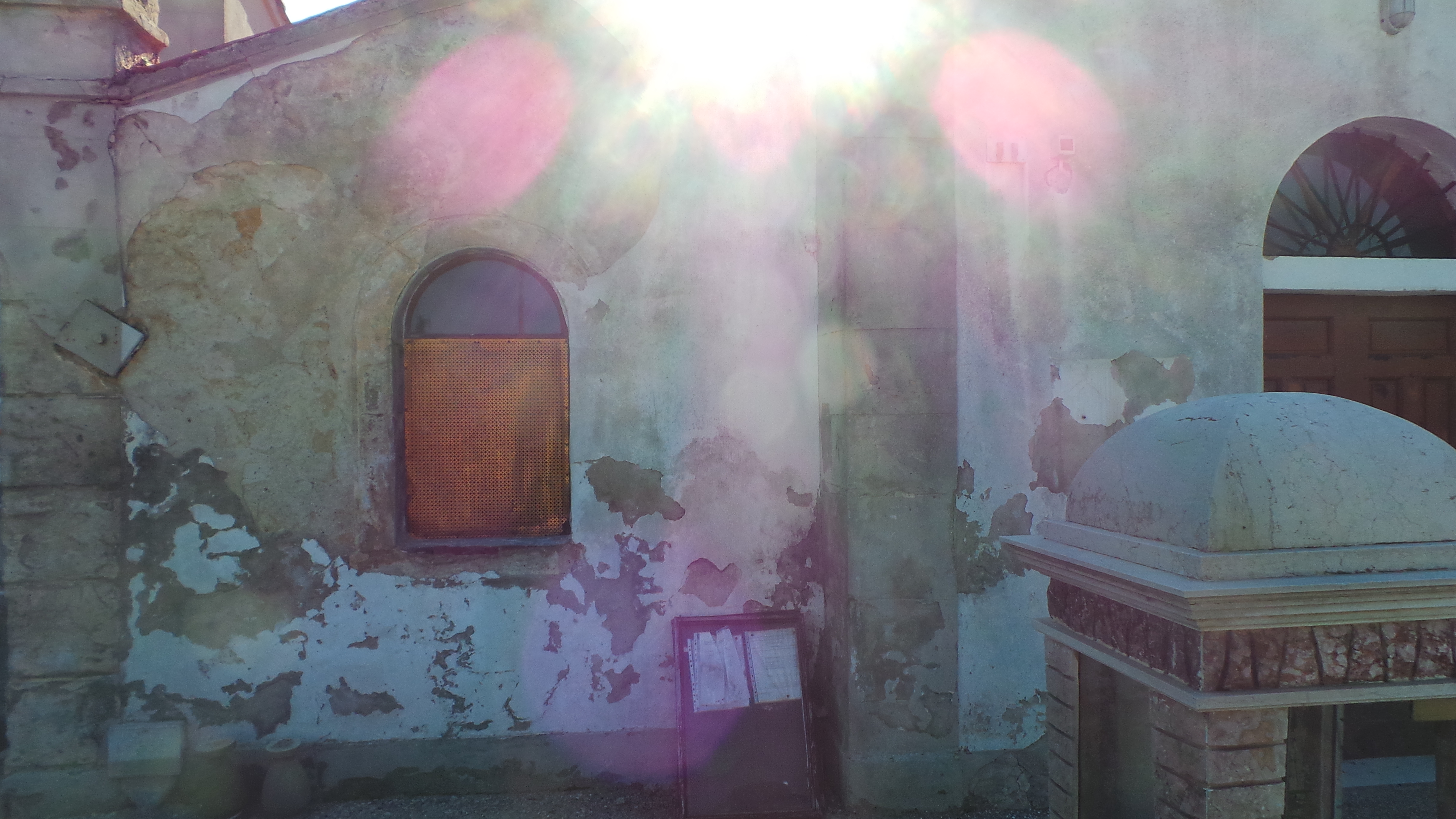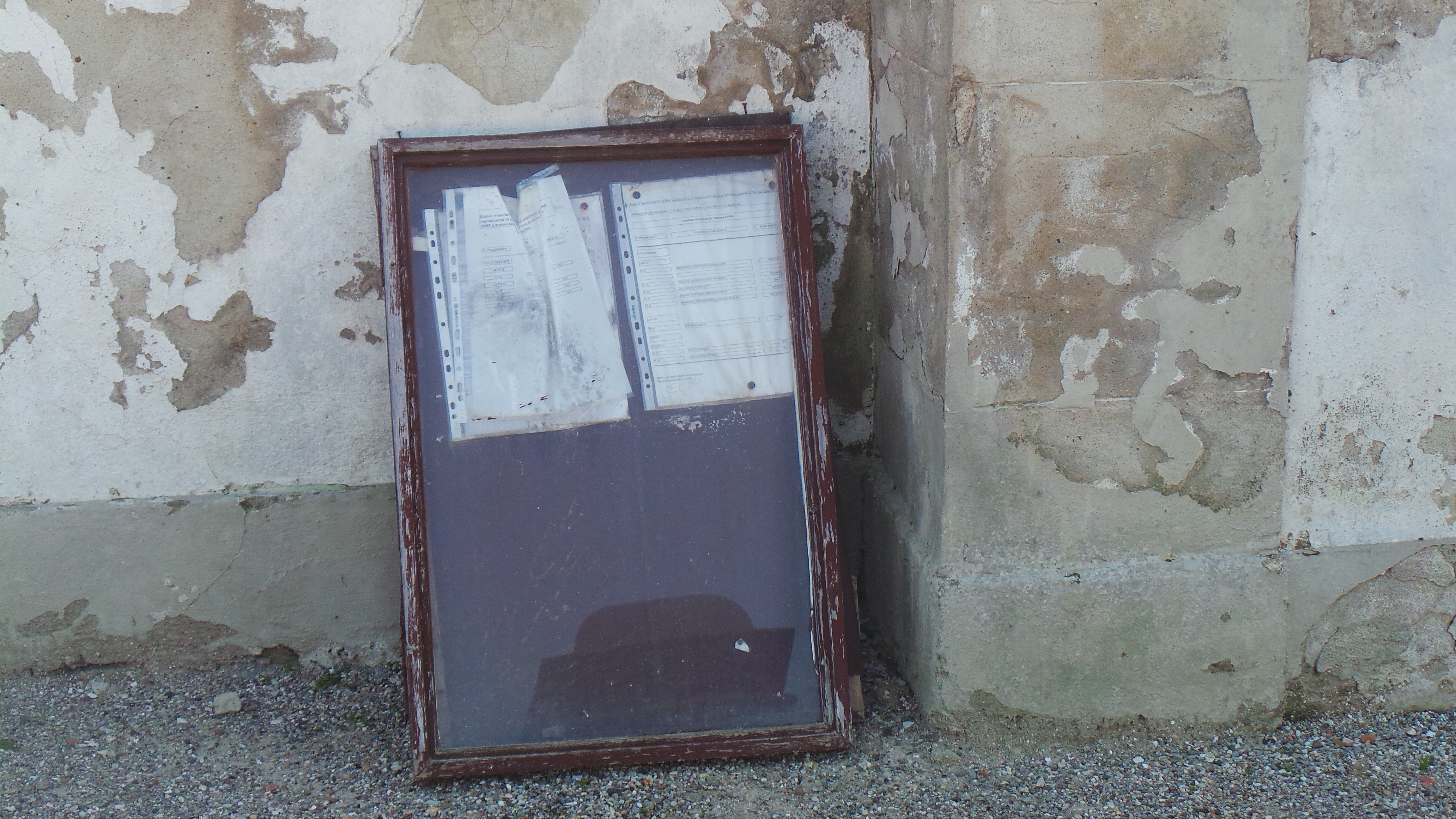 Andando ancora oltre, dirigendosi nuovamente verso il centro del cimitero, nella sua parte finale confinante con il bosco, si vede la cappella. Una cappella quasi completamente in rovina (come si vede dalla foto a lato), sia all’esterno che all’interno. La facciata esterna è completamente priva dell’intonaco e la stessa porta (vedi foto a fondo articolo), pur non strutturalmente compromessa, è esteticamente raccapricciante. La bacheca delle estumulazioni (vedi foto a fondo articolo), inoltre, rugginosa, è caduta a terra, non ha più un sostegno per rimanere appesa.
