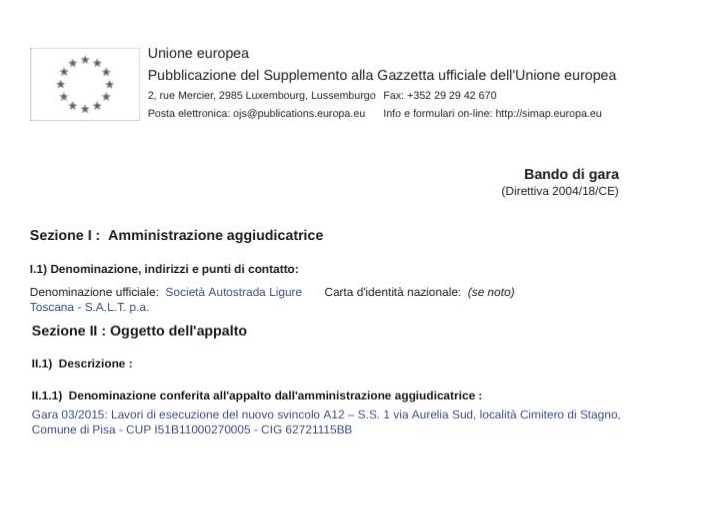Stagno «Ci sono voluti praticamente 7 anni e non so quanti viaggi a Roma, incontri che hanno coinvolto i soggetti più disparati, dall’Università di Pisa alla base militare di Camp Darby, un esercito di istituzioni, tra cui tre comuni, due province, una regione e un numero imprecisato di ministeri, ma soprattutto c’è voluta tutta la nostra convinzione, impegno e dedizione per poter arrivare a questo risultato». Le parole sono del sindaco Bacci, l’argomento il bando di gara europeo pubblicato sulla Gazzetta Ufficiale della Comunità europea con il quale la società SALT appalta i lavori di esecuzione del nuovo svincolo A12-SS1 in località Cimitero di Stagno.