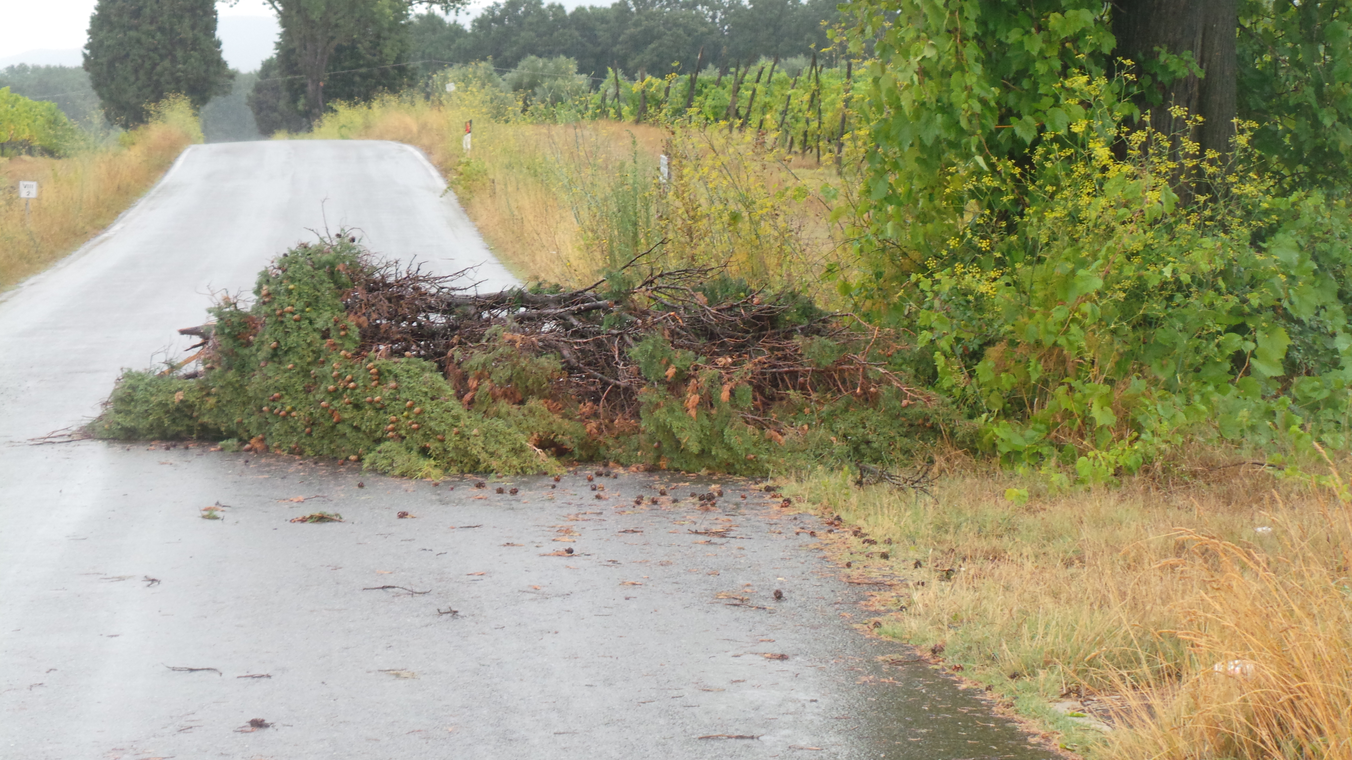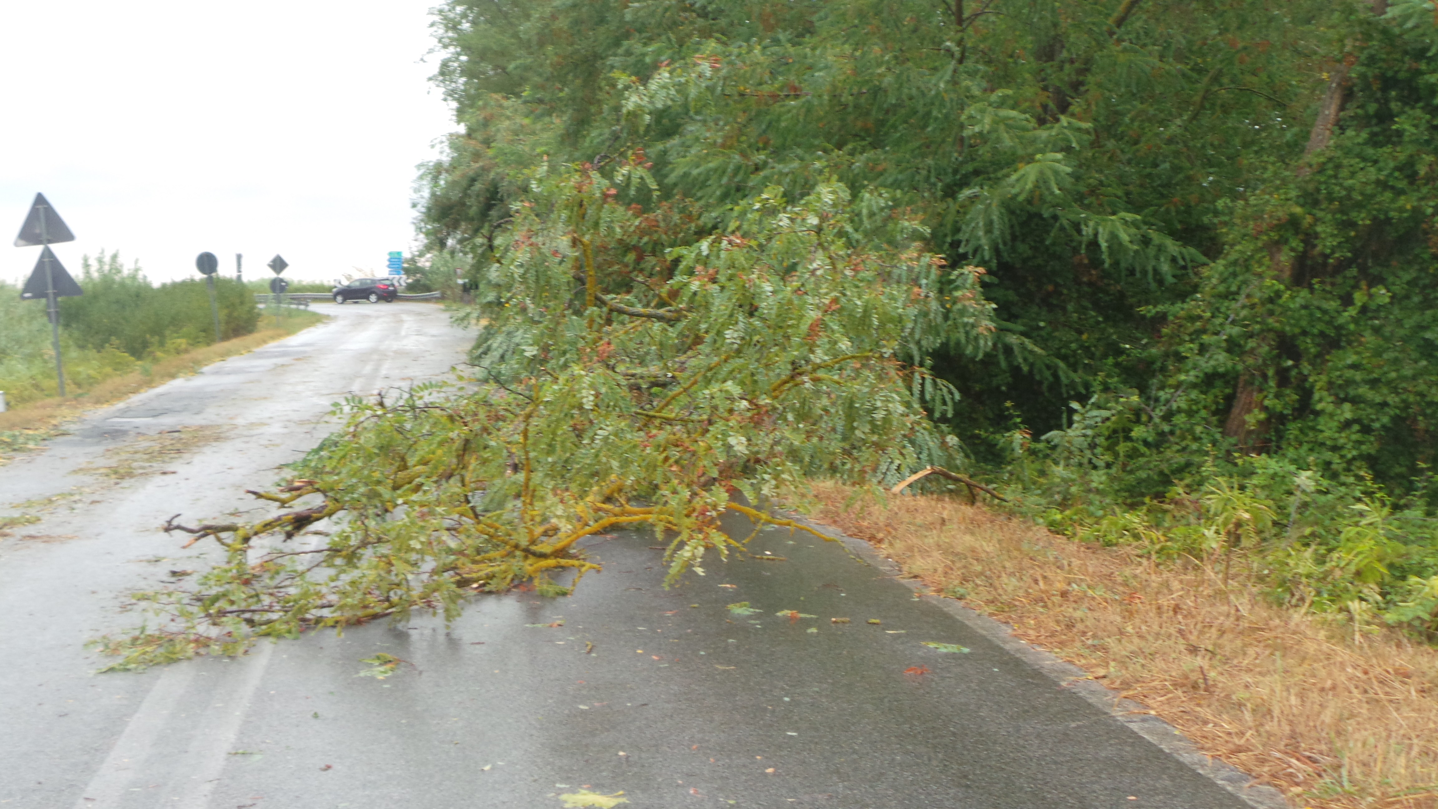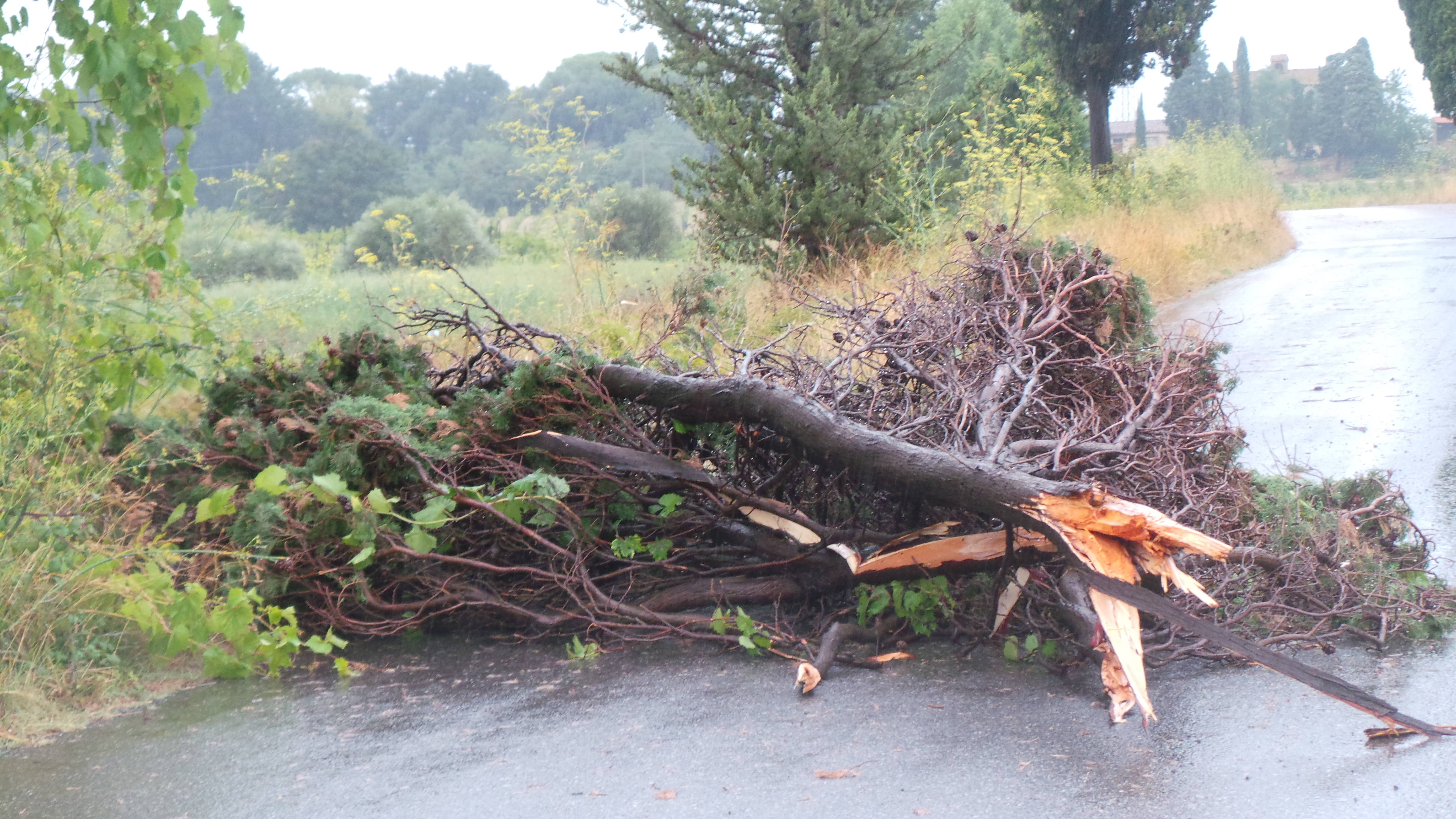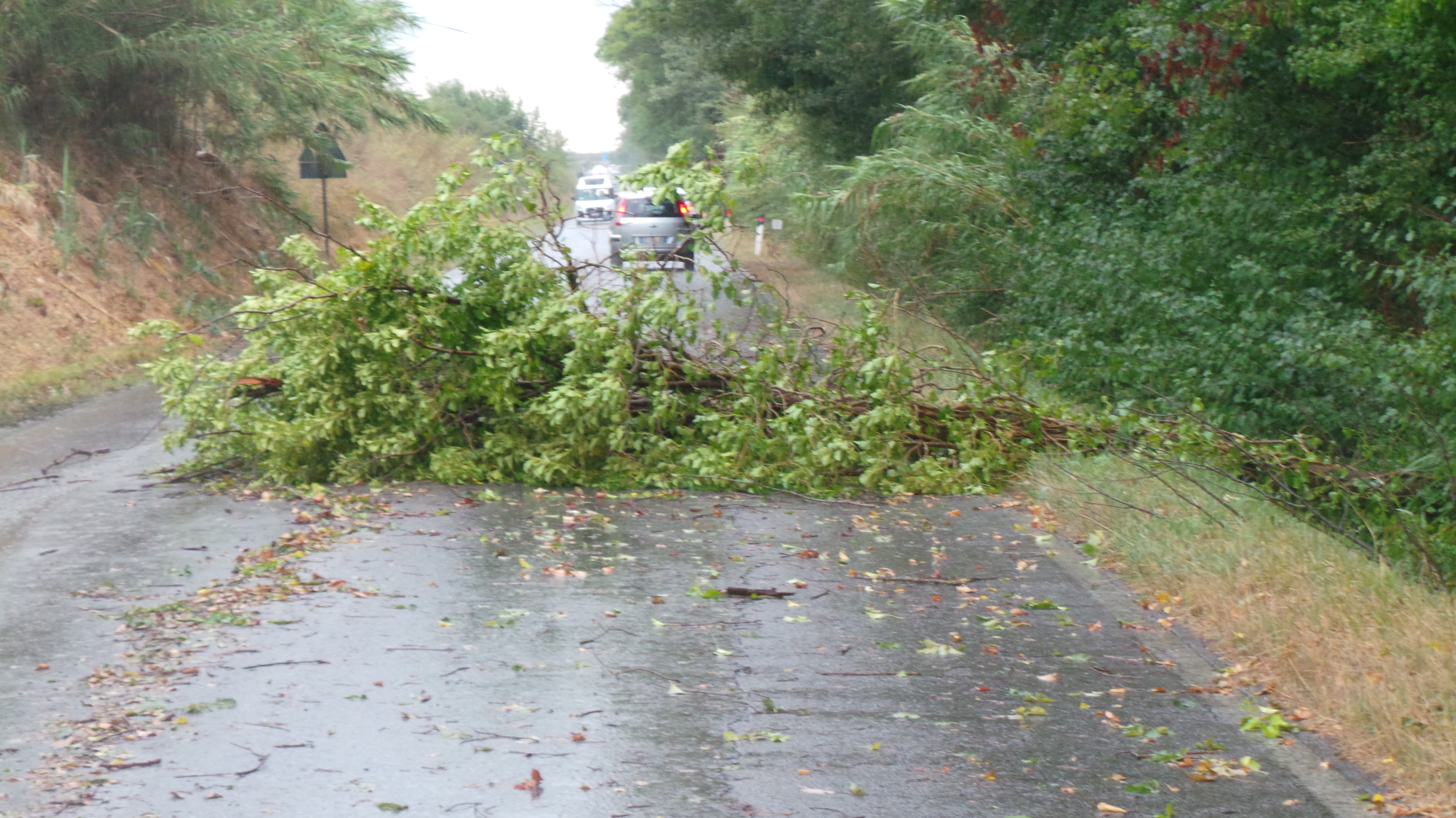 Proseguendo sulla 555 in direzione Vicarello, il problema è lo stesso: 3 alberi, anche se di non grande dimensione, sono caduti lungo la carreggiata, mentre a Collesalvetti addirittura un cassonetto è stato ribaltato dal vento in Piazza del Volontariato. A Stagno, invece, si registra al momento solamente il sottopasso allagato in Via Pertini. Sulla strada che dalla 555 porta a Nugola, ancora un altro albero caduto in strada a rallentare la circolazione, mentre a Parrana San Giusto è addirittura intervenuta la Provincia, sempre per problemi connessi alla caduta di alberi, cui non è stata immune nemmeno Colognole. Infine, interruzione del traffico stradale nel tratto finale di Via delle Sorgenti prima della località “Le Panzane” subito fuori da Collesalvetti, con i carabinieri a fare servizio stradale, bloccando l’accesso, ancora una volta per un albero caduto sulla carreggiata. Nei vari punti critici sono intervenuti Carabinieri e Vigili del Fuoco.