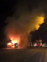 «All’inizio abbiamo visto una luce rossa abbastanza intensa brillare nel cielo – racconta un testimone – poi un forte boato e dopo ancora una volta quella luce e nuovamente il boato. Così, stupiti e spaventati, abbiamo seguito il mezzo dei Vigili del Fuoco e abbiamo visto questo camion già completamente in fiamme, quasi carbonizzato». Ancora da chiarire le cause nell’incendio.
