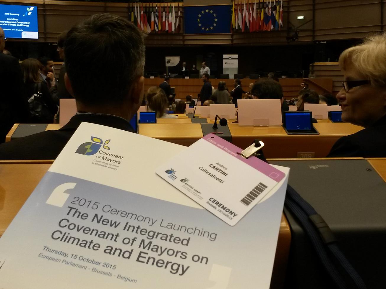 Collesalvetti Il Comune di Collesalvetti alla cerimonia annuale del Patto dei Sindaci, a Bruxelles. La cerimonia è avvenuta nell’emiciclo del Parlamento Europeo, dove annualmente i rappresentanti delle città europee si incontrano per delineare la strada della mitigazione e dell’adattamento ai cambiamenti climatici. La cerimonia, quest’anno, mirava a lanciare il “nuovo” Patto dei Sindaci con lo scopo di accelerare il ritmo verso la riduzione delle emissione di CO2 (il 40% entro il 2030) e di raggiungere una portata globale, aprendo la partecipazione alle autorità locali di tutto il mondo.