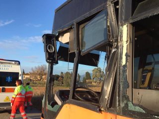 A quanto si apprende un tir per il trasporto auto stava uscendo dall’autoparco del Faldo. Nello stesso momento stava transitando in quel punto un autobus di linea. Il bus avrebbe tentato di sorpassare l’altro mezzo, il cui rimorchio tuttavia avrebbe dato, nella manovra in uscita, un colpo di coda al mezzo di linea, rompendone i vetri, che si sono letteralmente sbrciolati lungo la carreggiata.