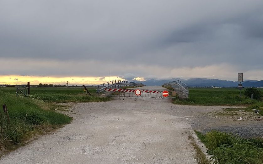 La strada ora interrotta è Via dei Santini, una strada vicinale. Sul posto sono intervenuti in sopralluogo gli uffici tecnici del Comune che hanno riscontrato un significativo abbassamento di una parte della struttura del ponte che funge da chiave di volta appoggiando sulle strutture laterali. Il viadotto attraversa lo Scolmatore e serve al transito dei mezzi agricoli, collegando i campi al di là del corso d’acqua a Mortaiolo.