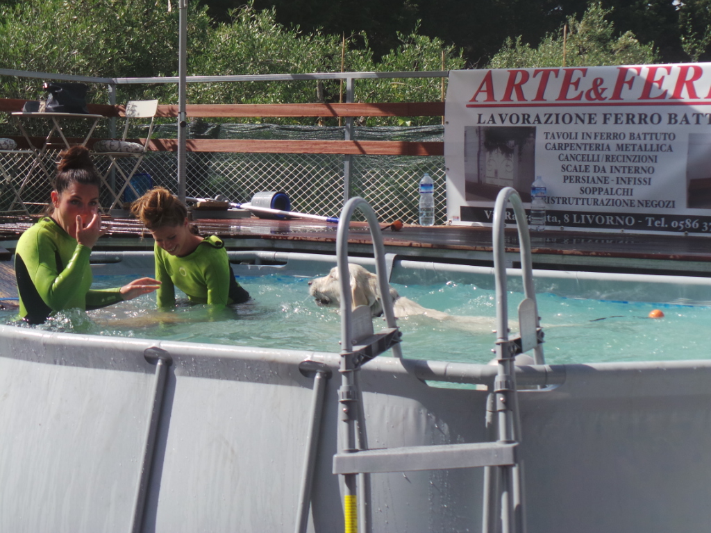 Stagno Una piscina per gli amici a quattro zampe. È quanto inaugurato ieri presso la Scuola di educazione e cultura cinofila Dog’s di Stagno, realtà nata nel gennaio del 2015 che presso la propria sede di Via Ajaccia si occupa di formazione di istruttori cinofili, di riabilitazione comportamentale del cane e di pet therapy. La scuola è composta da otto persone in organico: Cristina, Samuele, Irene, Federico, Veronica, Agnese, Martina e Francesco, istruttori e operatori pet therapy che condividono la passione per il mondo cinofilo.