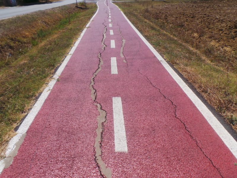 Un’opera costata molto, dunque, con i lavori di asfaltatura iniziati appena nel gennaio 2015, cui seguì l’apposizione dei new jersey, della segnaletica stradale e la verniciatura in rosso del manto nell’estate 2015. Due anni soltanto ed il sogno è già, se non svanito, crepato.