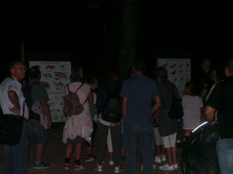 I presenti in seguito hanno potuto sostare presso i gazebi dello chalet del lago consumando una cena al sacco oppure usufruendo del servizio di ristorazione offerto dall’Asd Il Lago. In seguito vari gruppi sono partiti alla volta dei boschi circostanti guidati da alcune volontarie dell’associazione Gaia in modo tale da poter sentire i suoni ed eventualmente vedere le creature notturne che popolano i boschi.