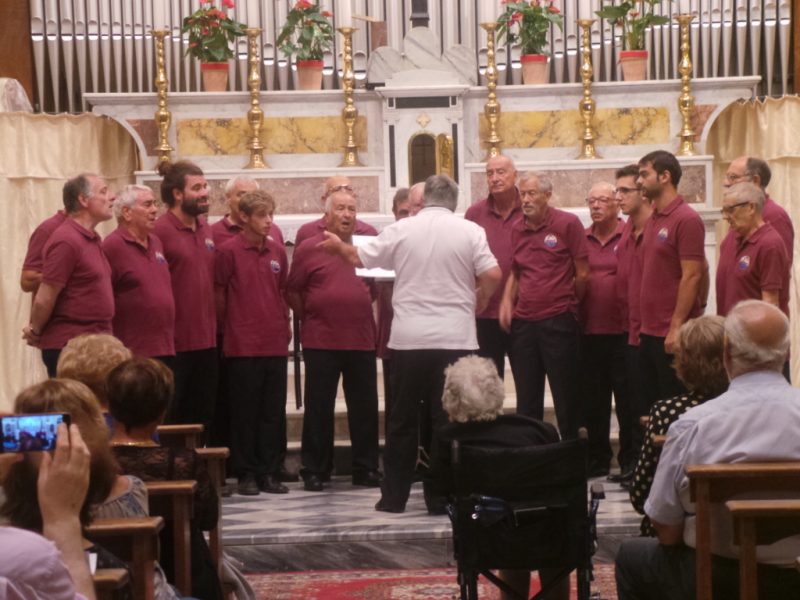 La performance del Coro “La Grolla” Dopo la De Monte è stata la volta de “La Grolla”, coro livornese costituito nel 1980 sotto la direzione di Don Valerio Baresi ed inizialmente improntato sul repertorio della tradizione musicale montana che in seguito ha ampliato il proprio repertorio con brani popolari della tradizione regionale e nazionale. Sotto la direzione del M° Salvatore Vargetto il coro, cantando rigorosamente a cappella (cioè non accompagnato da strumenti), ha esguito alcuni brani della musica popolare di alcune regioni d’Italia ed un brano della musica popolare latino americana. Ogni brano è stato preceduto da una breve sinossi sul tema e sul testo. Il repertorio dei brani eseguiti dal Coro “La Grolla” nella serata di ieri comprendeva Valsugana di Luigi Pigarelli, Stelutis Alpinis di Arturo Zardini, Marinaresca Livornese di Giuseppe Rapallo Cianetti, Benia Calastoria di Bepi De Marzi ed i brani Il Trescone e Alma Llanera di Gutierrez Ardente.