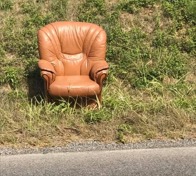 Chi transita su Via delle Colline, la strada che da Vicarello porta a Guasticce, avrà infatti certamente notato una poltrona sull’argine del Tora. È veramente singolare pensare che qualcuno, per disfarsi dell’oggetto, abbia messo a rischio la propria incolumità, portando la poltrona in quella zona, con una strada così trafficata e senza marciapiede. Talmente singolare che verrebbe quasi da pensare ad un gesto intenzionale. Chissà… magari una provocazione per sensibilizzare sull’assenza di una fermata dell’autobus degna di questo nome a Mortaiolo.