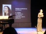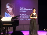 LE PERFORMANCE VOCALI DEI CANTANTI Una serata strutturata in due parti; nella seconda, dopo che ciascuno dei cantanti si era esibito anche nella seconda aria, il giudizio tecnico-artistico della giuria. Ad rompere il ghiaccio il soprano Korobetskaya, che ha cantato un’aria dal Mefistofele di Boito e nella seconda parte una dal Così fan tutte di Mozart. La donna ha mostrato padronanza vocale, ha esibito una voce calda e suadente e mostrato delle buone agilità. Poi è stata la volta del tenore Bulletti (che si è cimentato prima con Verdi, cantando un’aria da La Traviata e poi col Gianni Schicchi di Puccini). Il giovane, dalla voce vellutata e squillante, ha mostrato omogenità nell’emissione vocale. A seguire, la Komarova (soprano). Cantante dalla voce calda e voluminosa anche negli acuti, ha mostrato (sia ne La Traviata di Verdi che ne La Wally di Catelani) un’emissione non forzata e una buona padronanza delle agilità. Il quarto ad esibirsi è stato Zihao. Una voce dal timbro basso, la sua (com’è naturale, essendo baritono), ma non cavernosa. Il giovane ha mostrato espressività nella mimica facciale e una buona padronanza del francese nonostante la sua diversissima lingua madre (si è infatti cimentato nella Carmen di Bizet oltre che ne Il trovatore di Verdi). E ancora la Kolosova, classico timbro da mezzosoprano che tanto piaceva a Rossini, si è esibita infatti nell’aria di Rosina da Il Barbiere di Siviglia oltre che ne I Capuleti e Montecchi di Bellini. Espressiva nella mimica facciale, la donna ha mostrato bassi vellutati e acuti decisi. Infine, il tenore Bolotskiy, che ha cantato L’Arlesiana di Cilea e la celebre “Questa o quella” dal Rigoletto di Verdi. L’uomo, che all’inizio ha evidenziato un timbro delicato, ha in seguito mostrato la sua vera voce, capace di ingigantirsi assai. Una voce bene in maschera, capace di acuti voluminosi.