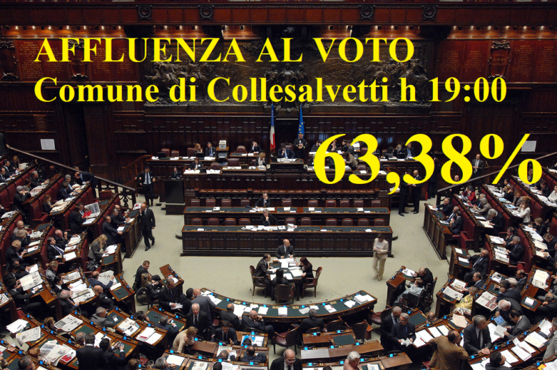 Collesalvetti 63,38%. Questa la percentuale di affluenza al voto nel Comune di Collesalvetti alle 19:00, leggermente superiore alla media nazionale. Gli aventi diritto potranno votare fino alle 23:00. Il Parlamento verrà eletto col nuovo sistema elettorale misto (maggioritario per 1/3 dei seggi e proporzionale per i restanti 2/3. Con il sistema maggioritario sono assegnati 232 seggi alla Camera e 116 seggi al Senato. L’assegnazione dei restanti seggi del territorio nazionale (386 alla Camera e 193 al Senato) avviene con il metodo proporzionale in collegi plurinominali.