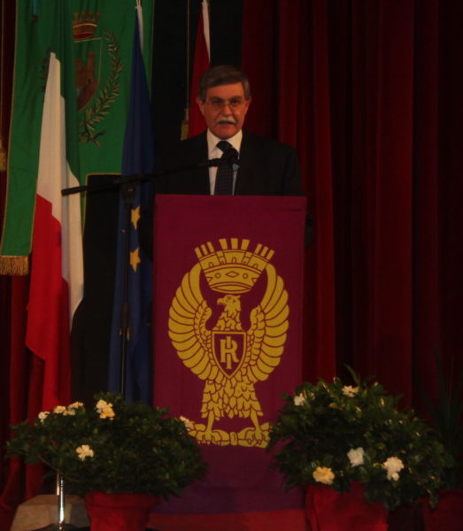 A seguire, la proiezione di un video storico dell’Istituto Luce e poi l’intervento del Questore, Orazio D’Anna, che ha esposto alcuni dati statistici: risultano essere in crescita furti, minacce e reati informatici; mentre sono in calo violenze sessuali e rapine. Ancora significativa, invece, l’offerta di stupefacenti. D’Anna ha anche ricordato l’importanza del Progetto Strade Sicure.