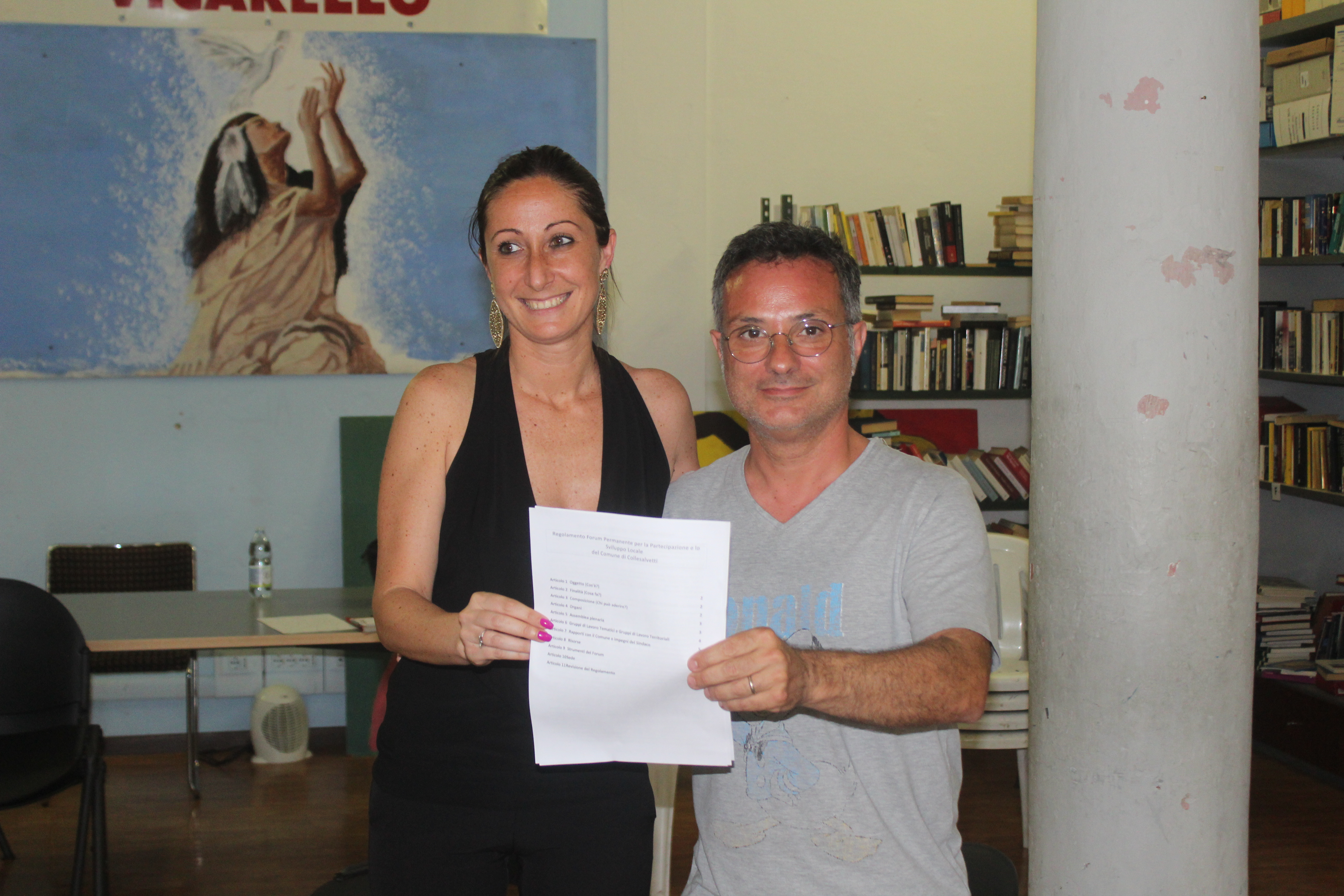Collesalvetti Un incontro per definire il piano d’azione e consegnare una bozza di progetto all’Amministrazione. Questo quanto avvenuto ieri a Vicarello presso la Sala delle Colonne dove si è tenuto l’ultimo degli incontri del progetto Le tue idee per Collesalvetti, percorso partecipativo finanziato da Regione Toscana e Comune di Collesalvetti e gestito dalla Società Simurg Ricerche. Obiettivo del progetto: la creazione di un forum permanente per la partecipazione. Come primo step per la sua creazione, nella serie di incontri che si sono susseguiti fra i mesi di maggio e di giugno i cittadini hanno predisposto una bozza di regolamento che dovrà passare il vaglio dell’Amministrazione Comunale.