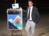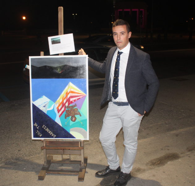 Matteo Carnemolla accanto ad una sua opera