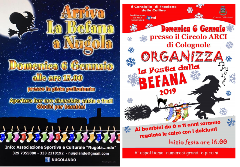 A Nugola la Befana arriverà alle 15:00 all’area polivalente della frazione. In programma giochi per bambini e l’immancabile cioccolata calda con frati. L’evento è a cura dell’associazione Nugola…ndo.