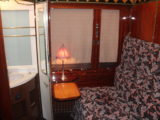 Tre le carrozze che hanno potuto visitare i presenti: il vagone letto, quello ristorante e quello bar. Il vagone letto si caratterizzava per un elegante arredamento con interni in legno e servizi igienici interni interni ad ogni singolo scompartimento. La carrozza del vagone letto fu costruita in Inghilterra nel 1929 e fu da subito agganciata a Le Train Bleu e, in modo alterno, al Rome Express. Nel 1937 fu poi trasferita sul Nord Express da Parigi a Riga. Fu collegata, inoltre, al Simplon Orient Express che al Lombardy Express. In seguito, nel 1971, fu trasferita sul Costa Vasca Express da Madrid a Santander.