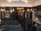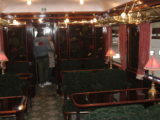 E ancora: l’elegantissimo vagone bar, che vede in cima alla carrozza una cartina politica d’Europa. All’interno, il classico bancone da bar e gli immancabili tavolinetti con abat-jour con comode poltroncine imbottite e divanetti. E, per allietare i passeggeri, un pianoforte a coda (per l’occasione dell’Open Day guasticciano appositamente suonato da un pianista). Nata inizialmente come vagone ristorante, la carrozza 3674 fu costruita in Francia nel 1931. Gli interni attuali sono stati progettati appositamente per il Venice Simplon Orient Express. Nel suo trascorso ci sono tratte di servizio nazionali durante l’invasione tedesca in Francia. Dopo la guerra fu collegato al Sud Express da Parigi a Irun sul confine spagnolo. Nel 1977 James Sherwood acquistò due degli originali vagoni letto all’asta di Sotheby a Monaco.