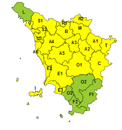 Il territorio del Comune di Collesalvetti si trova in Area A4, interessata dall’allerta color giallo