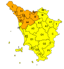 Il territorio del Comune di Collesalvetti si trova in Area A4, interessata dall’allerta arancione
