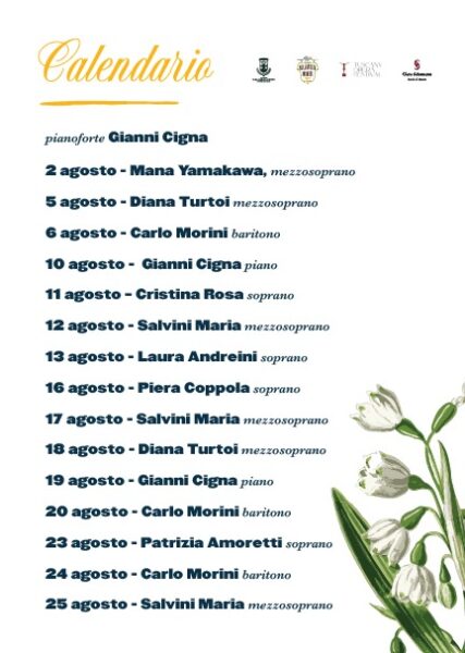 Nelle sere di spettacolo (vedi calendario qui a lato) infatti sulle rive del Lago Alberto di Guasticce, all’interno della Tenuta Bellavista Insuese, andrà in scena un mini Galà Lirico. Ad esibirsi saranno vari cantanti lirici, accompagnati al piano. Due serate saranno dedicate alla sola esibizione pianistica. Trattandosi poi di un’AperiOpera, chi vuole potrà, a margine del concerto, consumare un aperitivo in riva al lago.