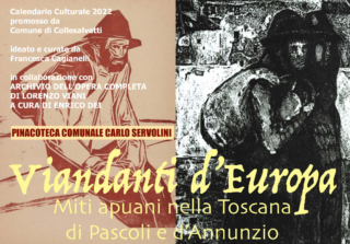 Collesalvetti Si inaugura giovedì 3 marzo alle 17:00, alla Pinacoteca Comunale “Carlo Servolini” (Collesalvetti, Via Umberto I°, n. 63), la 1^ Puntata del Calendario Culturale 2022, “Viandanti d’Europa. Miti apuani nella Toscana di Pascoli e d’Annunzio”, promosso dal Comune di Collesalvetti, ideato e curato da Francesca Cagianelli, in occasione della mostra Lorenzo Viani. L’incubo del segno (fino al 7 aprile 2022, tutti i giovedì, ore 15.30-18,30 e su prenotazione per piccoli gruppi al numero: 392-6025703).