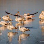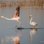 Guasticce Da circa una decina di giorni, sostano nella Riserva Naturale “Oasi della Contessa”, all’interno della Tenuta Bellavista Insuese, alcuni fenicotteri rosa (Phoenicopterus roseus), in numero variabile dai 18 ai 51 individui di varie classi di età, caratterizzati dall’appariscente piumaggio rosato. Durante il giorno i fenicotteri si alimentano grazie al meccanismo filtrante del becco, per raggiungere piccoli invertebrati acquatici. Si tratta di un evento particolarmente significativo: l’ennesima riprova del valore della biodiversità insito all’interno dei 700 ettari della Tenuta Bellavista Insuese.