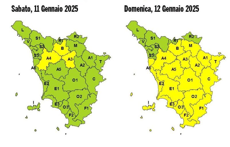 La Protezione Civile regionale ha prorogato fino a domani, domenica 12 gennaio, l’allerta meteo di colore giallo per vento forte su gran parte della Toscana. Restano escluse dall’avviso le zone a nord-ovest della regione.