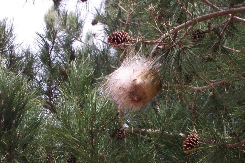 - Asportazione dei rami infestati : il taglio dovrà riguardare esclusivamente le porzioni di pianta contenenti i nidi, che saranno successivamente sigillati in appositi sacchi di plastica per evitare la dispersione di peli urticanti nell’ambiente. Anche i nidi vuoti devono essere eliminati, poiché potrebbero rilasciare particelle urticanti a causa degli agenti atmosferici.