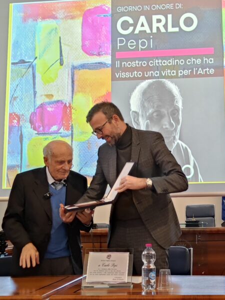 Il Comune e la Pro Loco di Crespina-Lorenzana hanno conferito a Pepi due targhe celebrative, riconoscendone pubblicamente il ruolo di promotore della cultura e di custode della bellezza. «Grazie, Carlo, per aver messo a disposizione della comunità il tuo straordinario patrimonio di ricerca», ha dichiarato il sindaco Bacci. «Il nostro obiettivo sarà valorizzare il tuo lavoro e le migliaia di opere che hai raccolto, puntando alla creazione di una fondazione che coinvolga il Comune e la Regione, per dare lustro a questo immenso tesoro. Il tuo operato è una autentica e viva testimonianza di quanto l’arte possa essere al servizio della collettività».