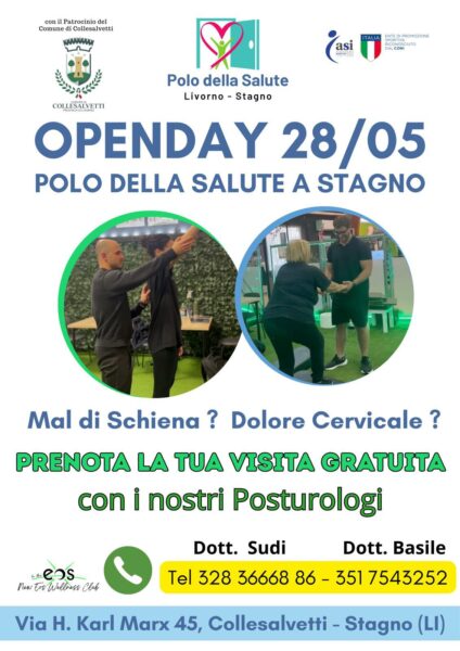 STAGNO (LI) – Una giornata all’insegna della prevenzione, dell’ascolto e della promozione della salute: è quanto propone il Polo della Salute di Stagno, che mercoledì 28 maggio 2025 aprirà i propri spazi alla cittadinanza in occasione di un Open Day interamente dedicato alla valutazione posturale e funzionale.