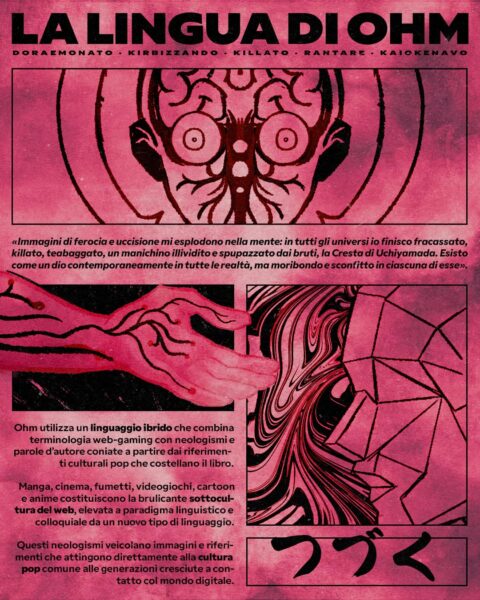 Con Ohm, la sua ultima fatica letteraria pubblicato da Bookabook, trasporta sulla pagina lo stesso impasto linguistico che ha conquistato i suoi follower: tre protagonisti sospesi tra precarietà, illusioni digitali e un costante bisogno di reinvenzione. L’opera, che l’autore definisce una “GIF generazionale”, esplora gli attriti di una realtà ormai filtrata da una quotidianità ibridata con la dimensione online, nel racconto di una generazione sospesa tra alienazione e ricerca di senso.