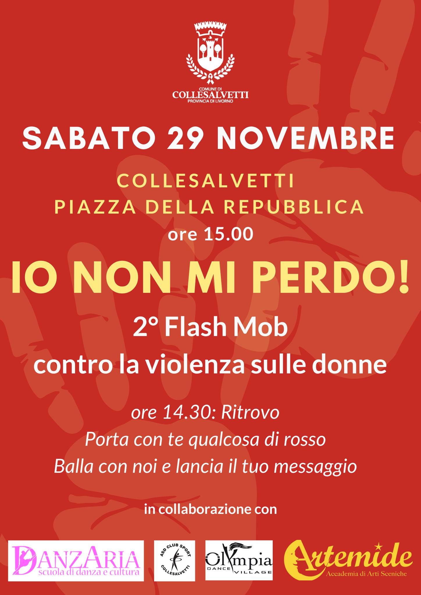 COLLESALVETTI — Sabato 29 novembre, alle ore 15.00, piazza della Repubblica diventerà il palcoscenico della seconda edizione di Io non mi Perdo, il Flash Mob promosso dal Comune di Collesalvetti in occasione della Giornata Internazionale per l’Eliminazione della Violenza contro le Donne.